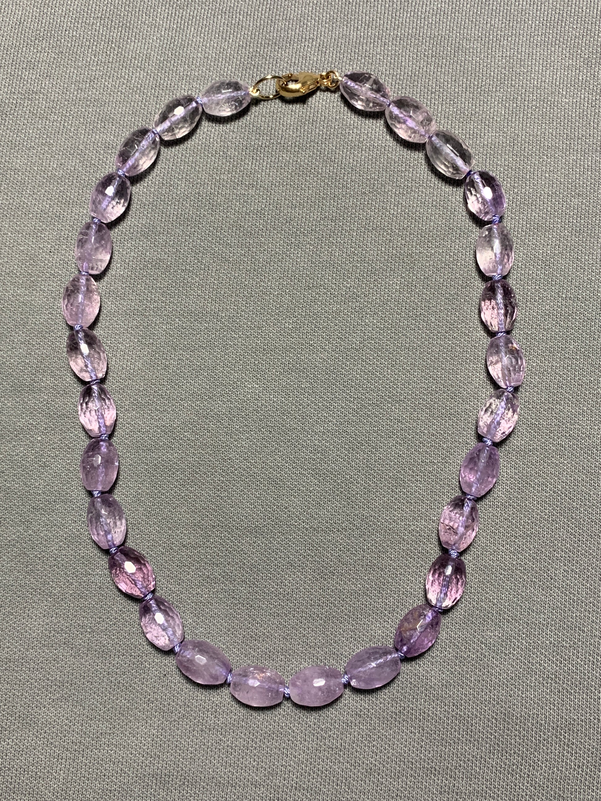 Lilac Amethyst Oval Nugget Hand Knotted Necklace