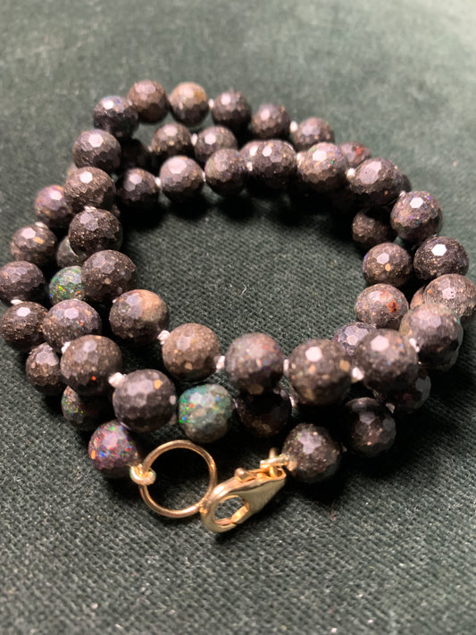 Australian Black Opal Hand Knotted Gemstone Necklace