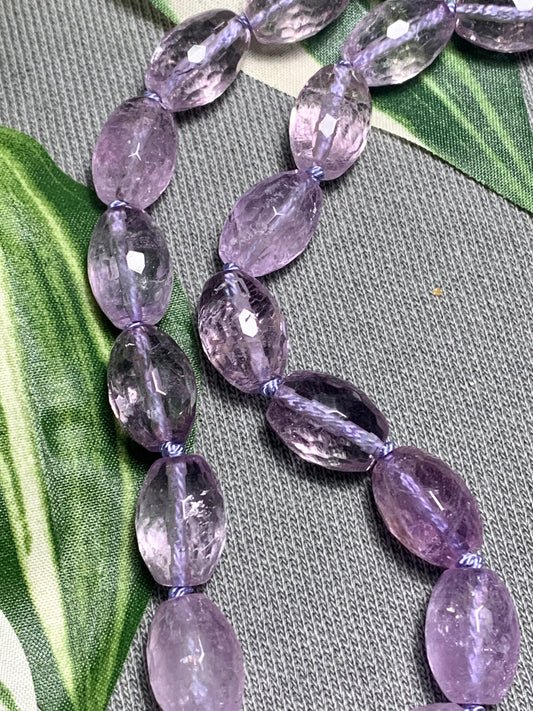 Lilac Amethyst Oval Nugget Hand Knotted Necklace