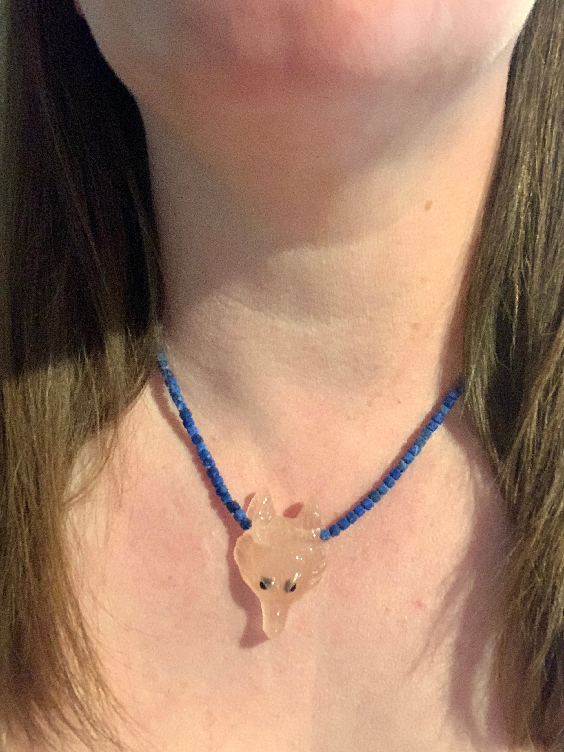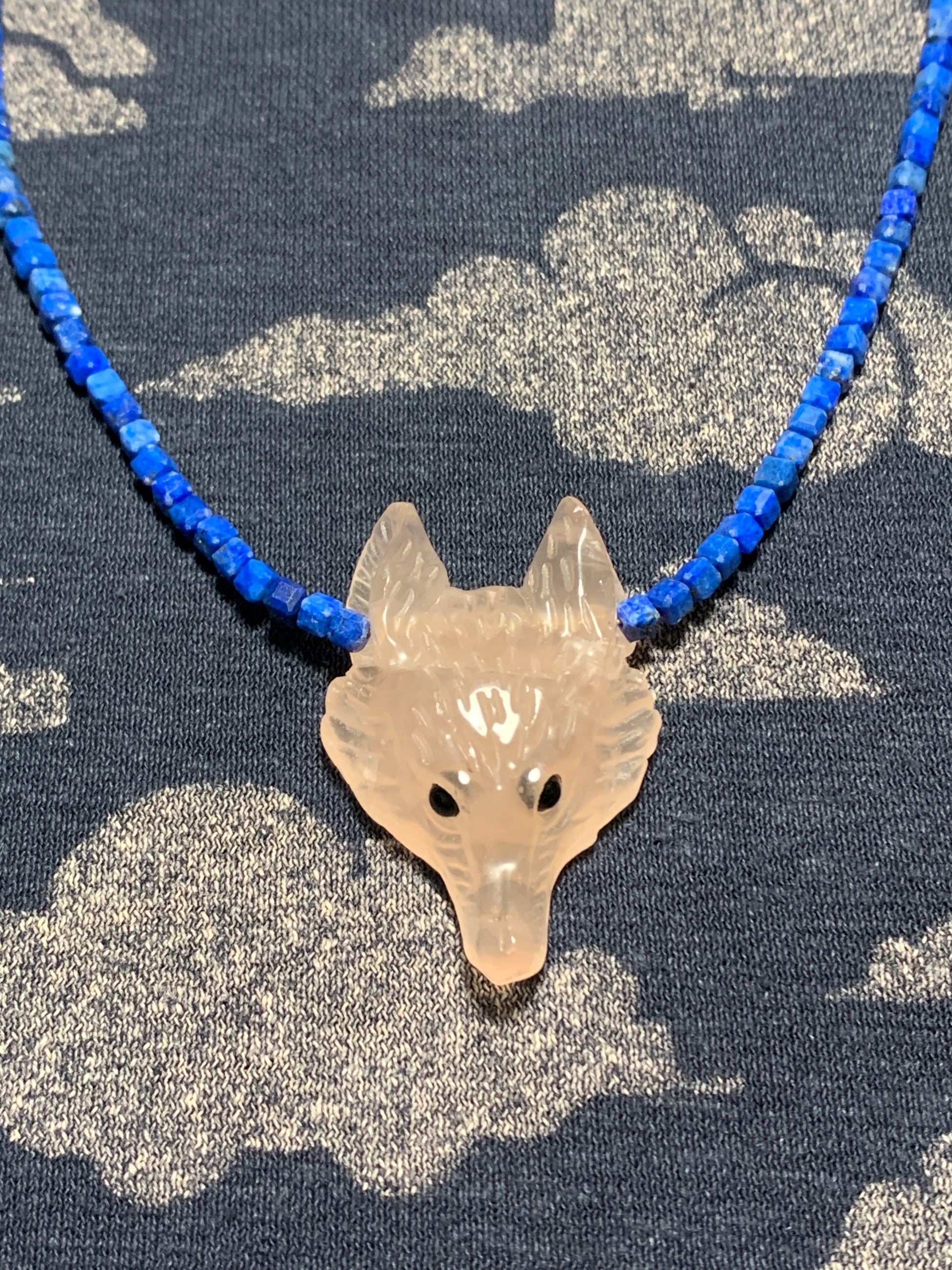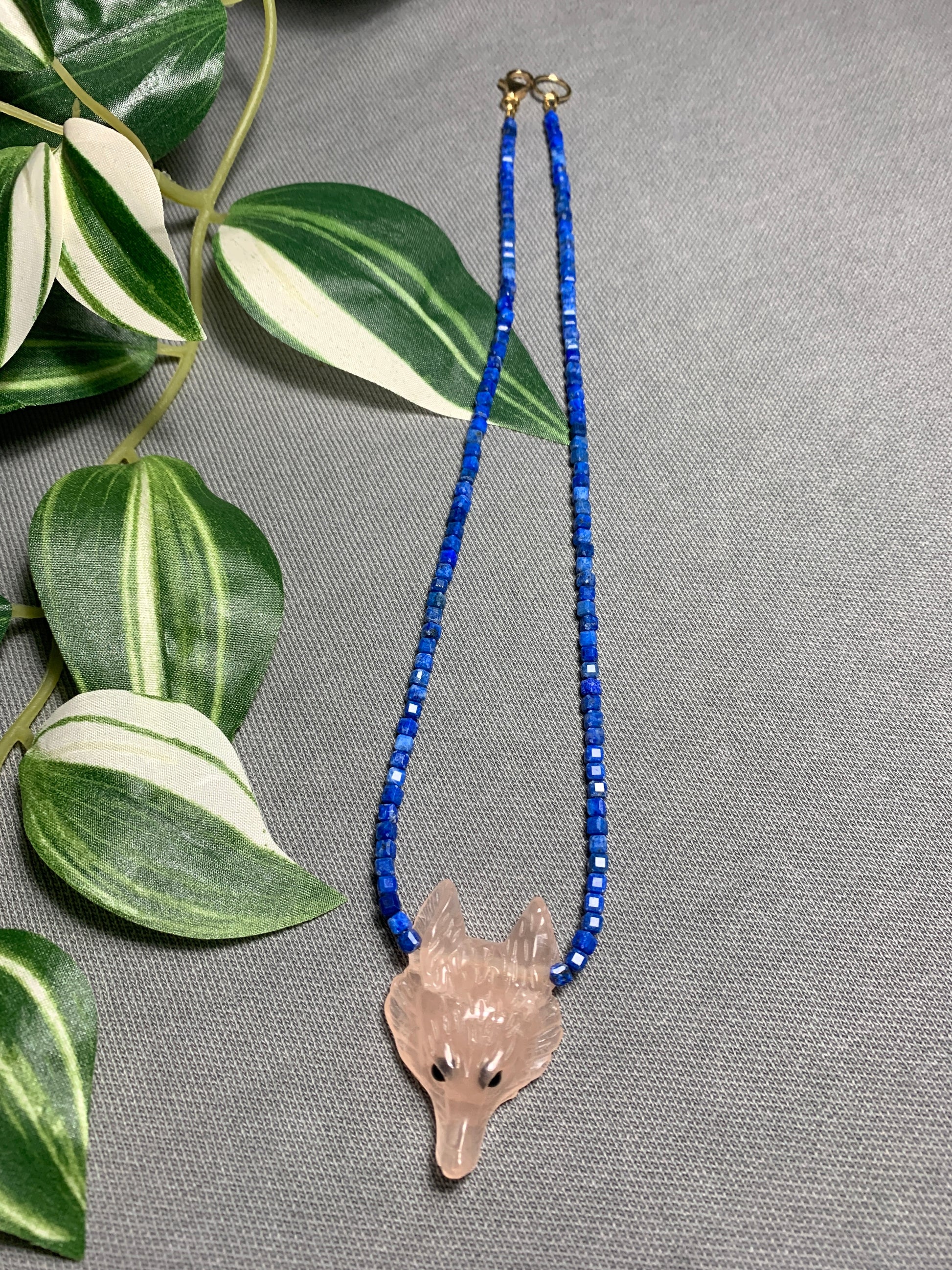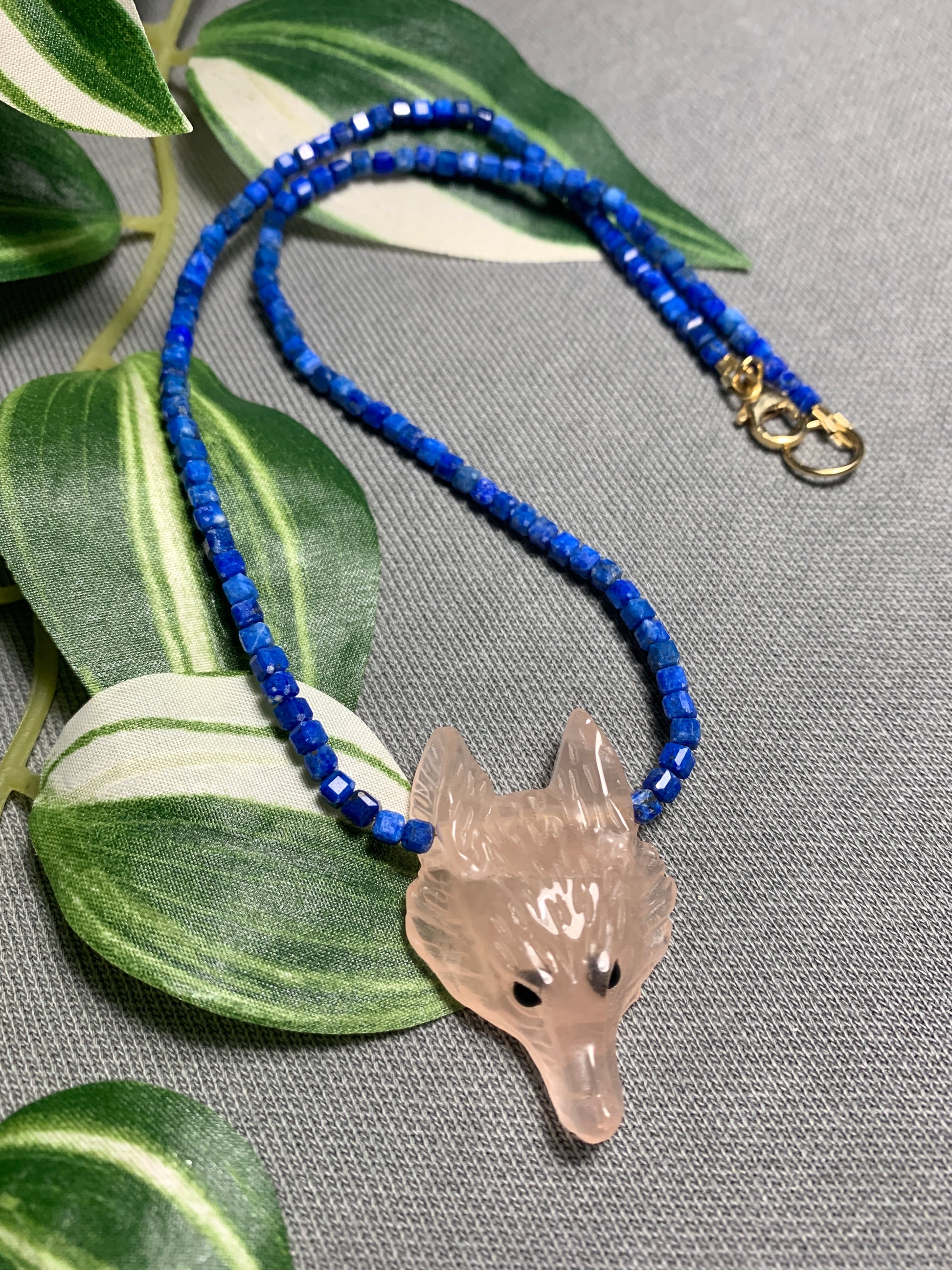 Unleash your daring spirit with our Rose Quartz Gemstone Wolf Necklace! Featuring high-quality lapis cubes and a hand-carved rose quartz wolf pendant, this necklace exudes a bold energy of protection and strength. Perfect for those who embrace risk and adventure, channel your inner wolf mama and guard your peace in style!